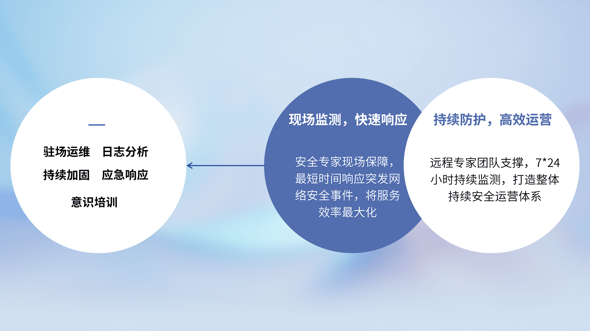 针对客户行业特性,,,提供专属的一站式安全管理服务,,,,帮助客户全面感知网络空间威胁,,通过安全专家的线上、、、、线下防护支持,,,实现风险闭环,,,将安全保障常态化,,,为客户打造常态化安全运维运营服务。。。。